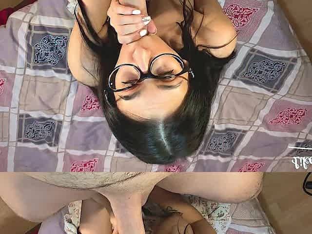 Glasses wearing pale skinned teen screwed in all holes by ebony wang