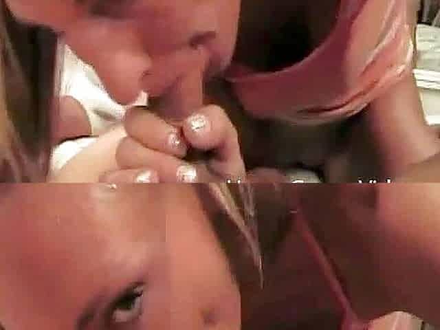 Horny sluts team up on cock for sexy threesome