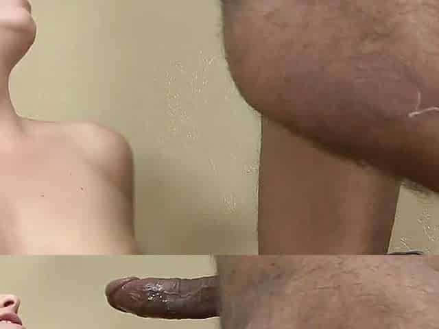 Eager brunette with small tits sucks and fucks black guy's pole and gets cream pie