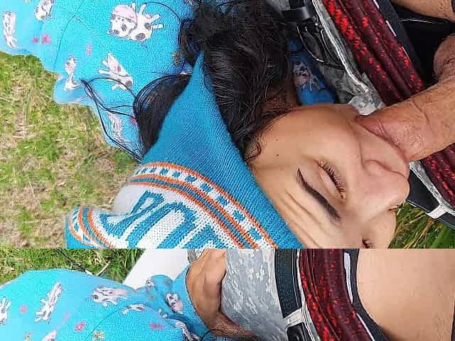 Cum Dripping Tits Licked Clean After Outdoor Pounding