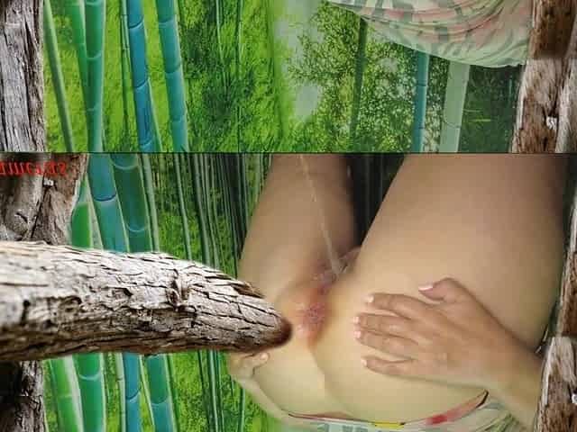 Destroyed anal floozy gets creampie and pees after wooden booty bang