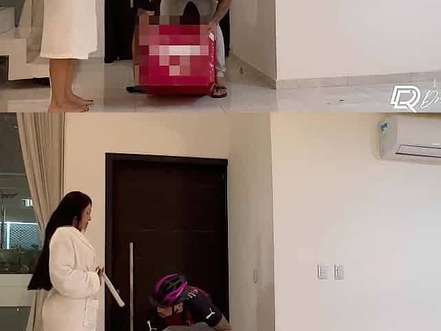 Delivery guy makes delivery and fucks hot brunette who was home alone
