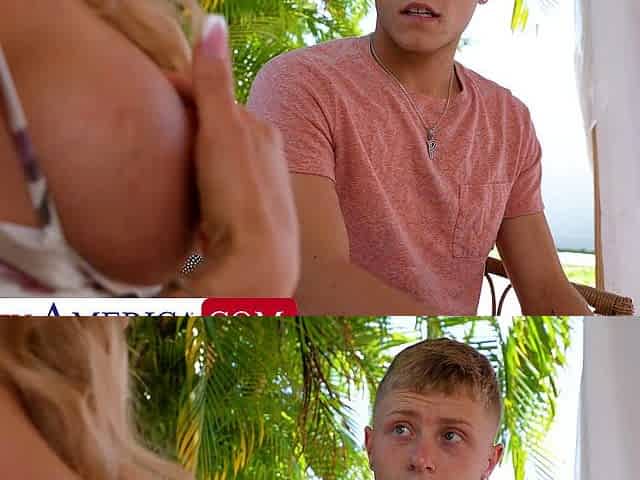 Youthful neighbour helps his neighbour carry her groceries, this babe awards him with her booty