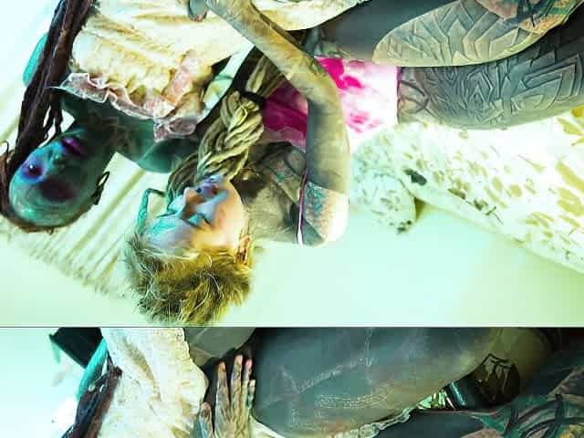 Tattooed Gals Alt Teen double team the Tattooed man to Satisfy Him