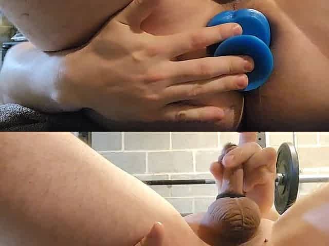I love stretching his taut butt and hearing my large balls slap against his