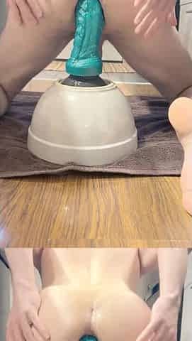 cutie rides a 40 cm sex toy and inserts it in her butt