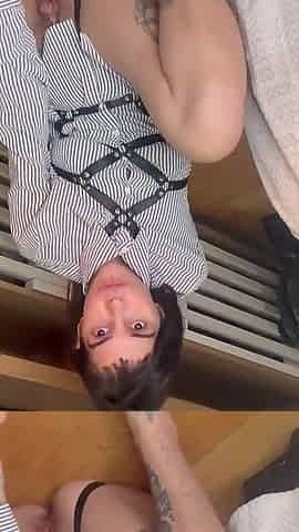 masked femboy in pink micro bikini anal training and self facial