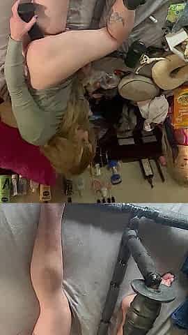 A Blonde Is Double Fucked with a Dildo and a Fucking Machine