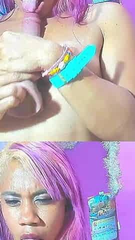 Black Amateur Rides and Sucks Dildo in Cowgirl Position