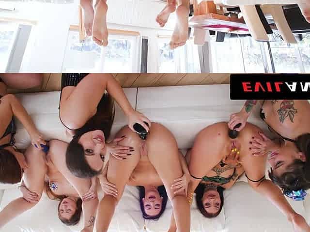 Who Can Gape the Widest in a 6 Babe Butt Fucking Lesbian Grop Hardcore?