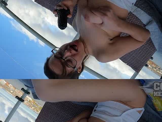 Gabriela Lati Afternoon Deep Dildoing Her Pussy And Finger In Her Ass Dp Sunny Outdoor Terrace