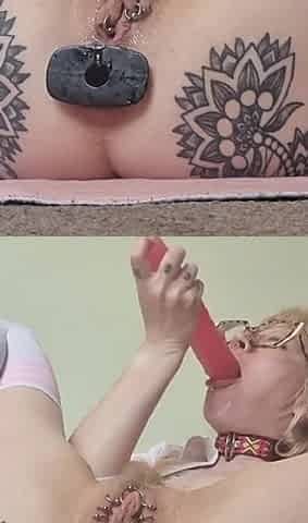 Haley Scott performs oral-sex-sex on a big sex tool and engages in ass-plug with a bigger rod