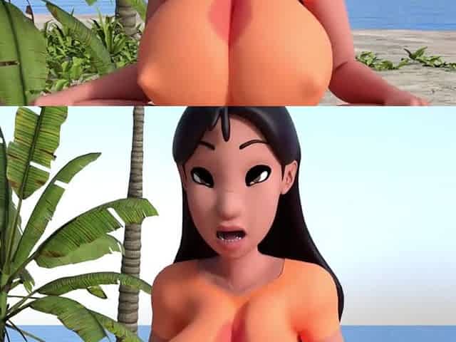 Lilo And Stitch - Nani Anal Riding Huge Bad Dragon Dildo Up Her Ass On Tropical Island