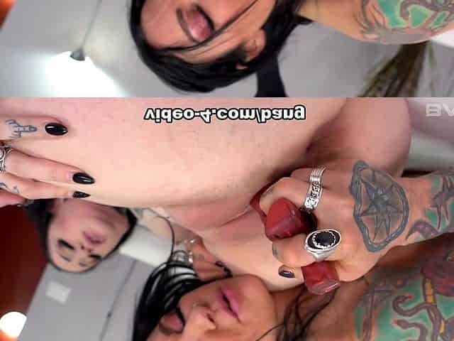 "Lez POV analtoying and foot fetish sex for busty inked MILF"