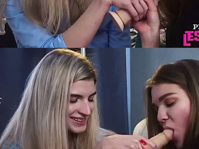 Two Beautiful Lesbians with Big Tits Lick Each Other's Pussy with a Dildo in Their Ass