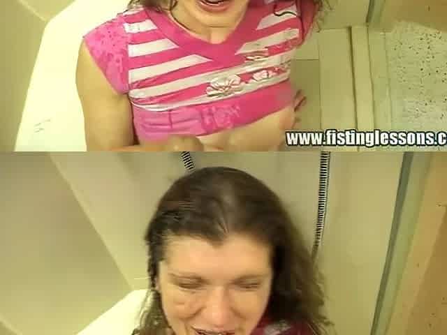 Stacy Bloom fisted by Kitty Li in red latex gloves. - PissVids