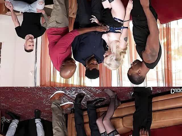 Wonderful interracial gangbang with a teen blonde Lexi Lore