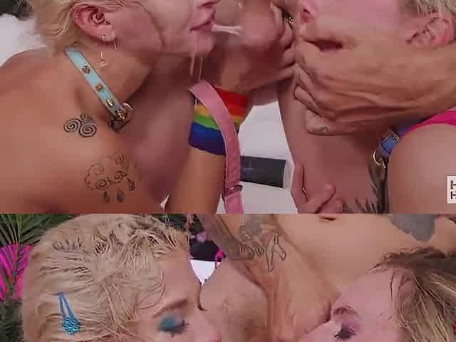 Ass to mouth anal threesome with 2 sexy blonde bubble butt chicks - ass fucking