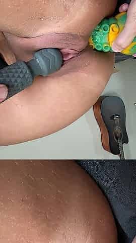 that babe has a soaked vagina from an anal toy