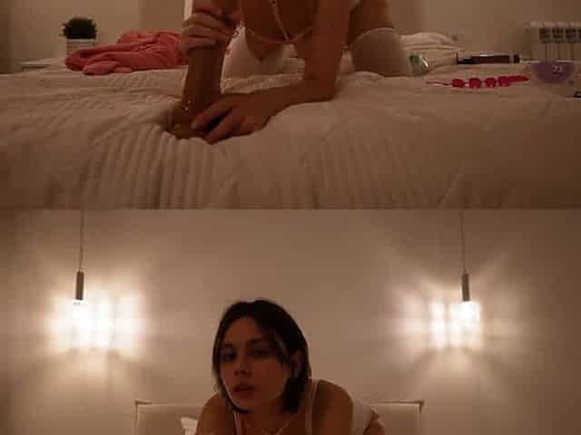 Leona is feeling super frisky on the bed