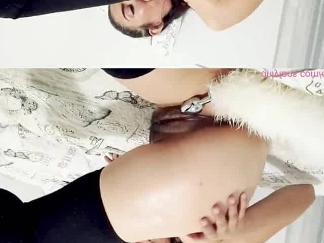 Mexican Latin Chick masturbating with a white foxtail plug in her butt until climax