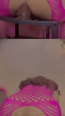 Whore wearing pink chastity cage makes cream with her cunt