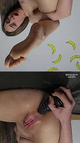 Large rubber wang, tightly enters my constricted booty. Squirt