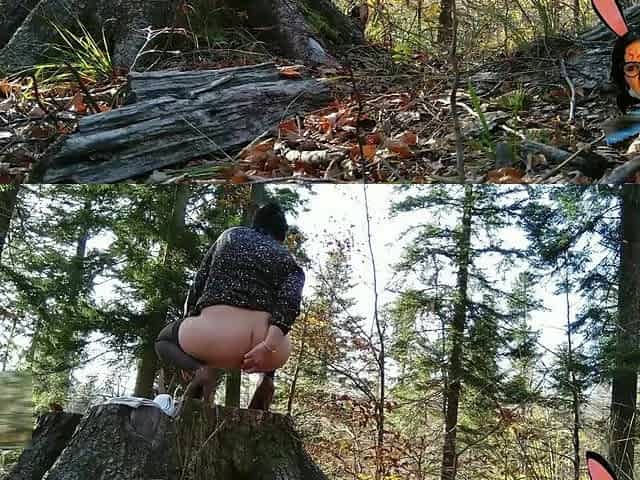 Stockings and high heels mature milf mom pissing outdoor with anus on leash