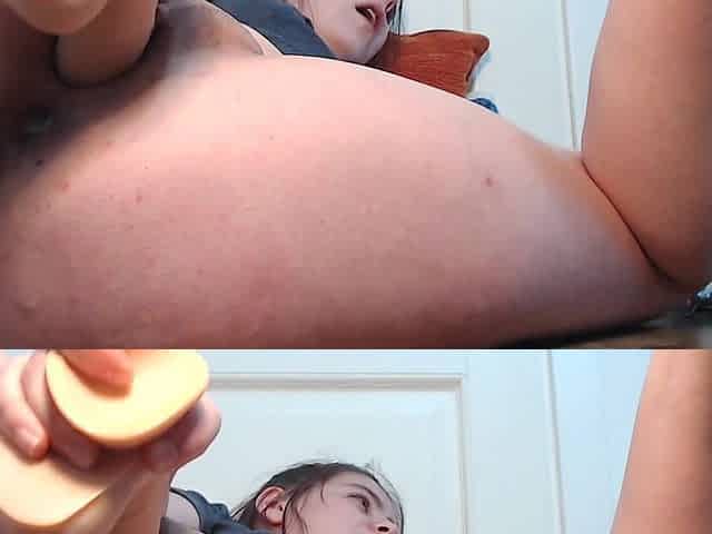 Отчим чуть не спалил меня, пока я трахала свою попку баклажаном и кончала от анального проникновения