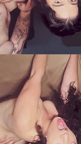 The cutie with 2 tongues and a messy throat likes booty to throat
