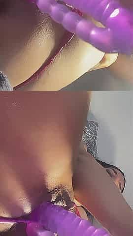 cute stripped angel in her room fondles her vagina and booty then bangs her snatch with her sextoy
