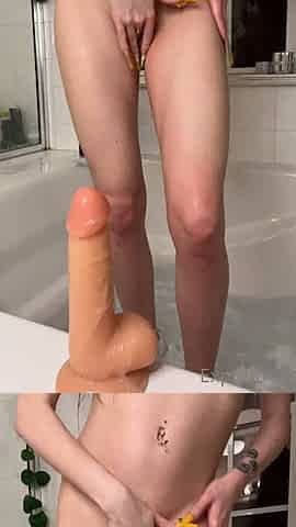 Inflatable butt plug in my butt followed by a massive vibrating knob until I squirt