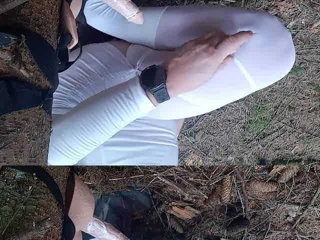 White nylons and impure forest: Sissy in suit riding tree vibrator (Anal & Cum)