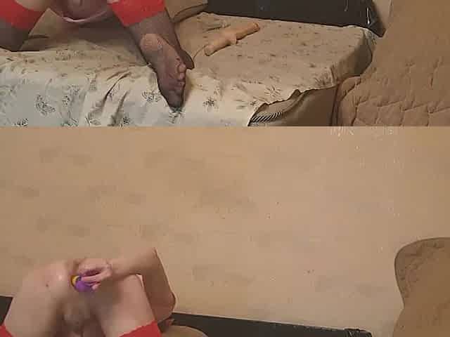 Sissy sextoy on the couch