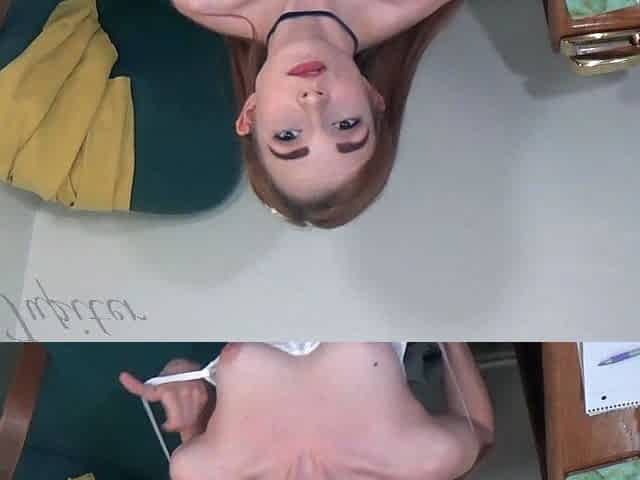 Lavement au lait et grosse bite rose pour la rousse Sophie Ice