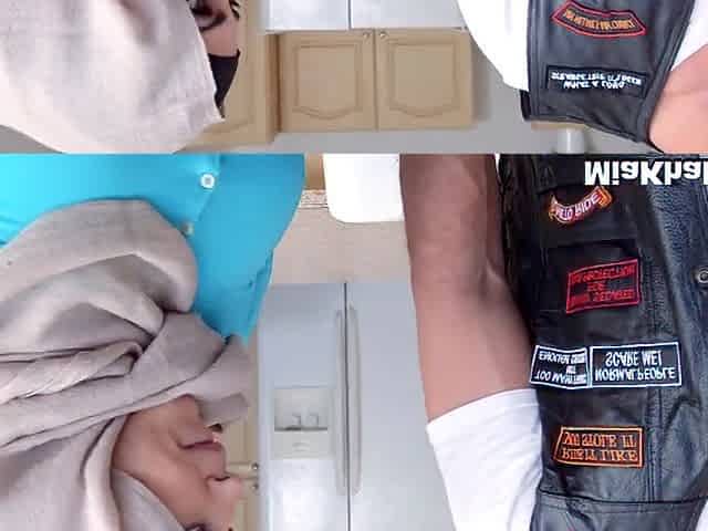 Hijab-wearing Madi Laine gives Bobby Beefcakes a blowjob