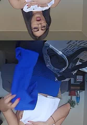 Sassy milf tries on a sexy outfit for her insatiable husband