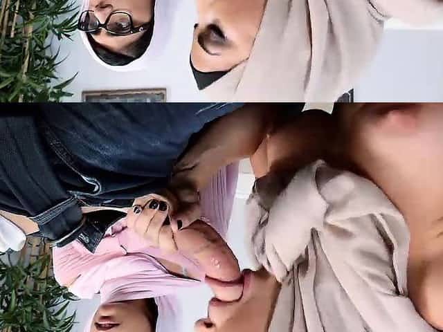 Arab girl in hijab sucks two big fat cocks