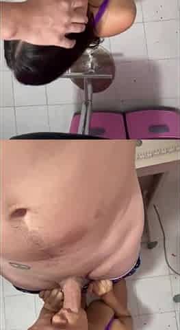 Sara Khan gets down with her hot Latina friend in the restroom