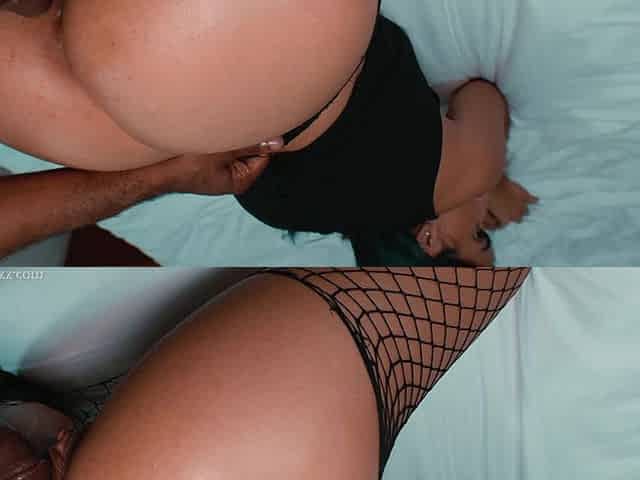 Aria Banks gets her pussy stuffed with bbc in intense interracial action.