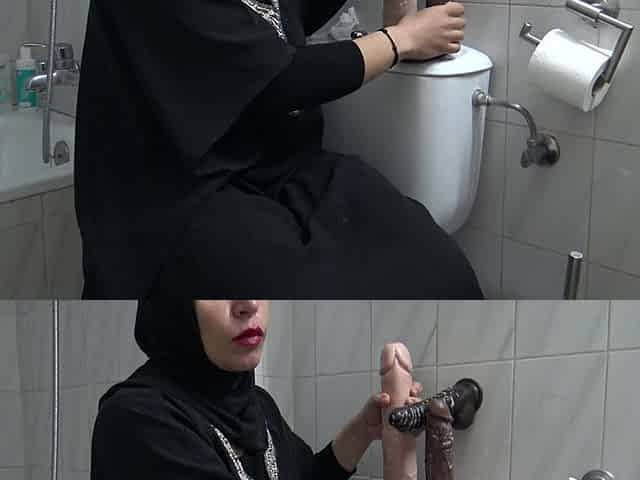 British Egyptian Hairy MILF Suck Cock in Bathroom