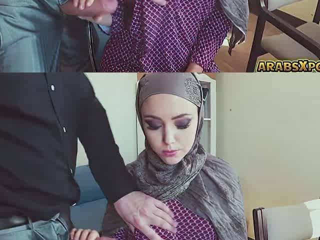 Hijab Arab lady received a warm load of jizz first time