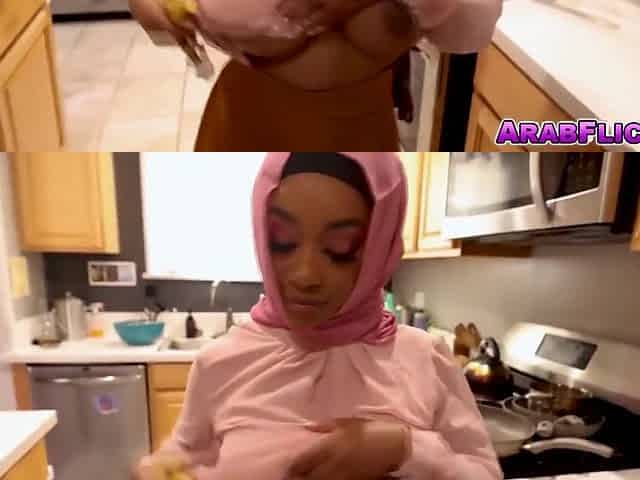 Thick huge natural tit Arab MILF rides an American dick