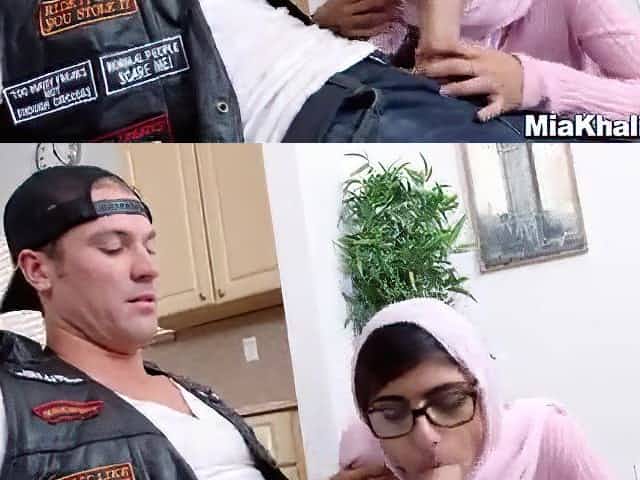 Mega busty brunette chick Mia Khalifa gives blowjob