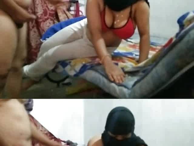 Arab Moroccain Girl in Hijab with Cuckold Husband Wearing Her Lingerie