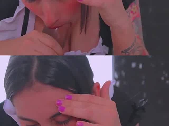 Curvy Buxom Brunette Maid Takes Care Of Her Boss's Boner & Gets Rewarded With CIM