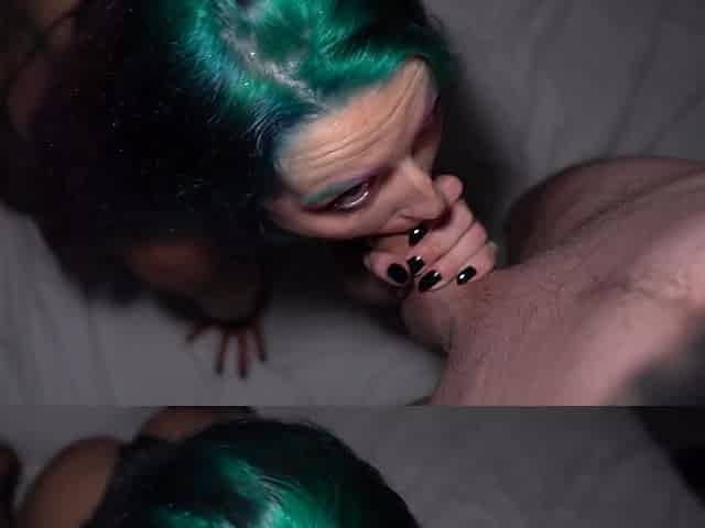 Slutty latina babe with green hair and wearing sexy lingerie gets fucked hard in bed