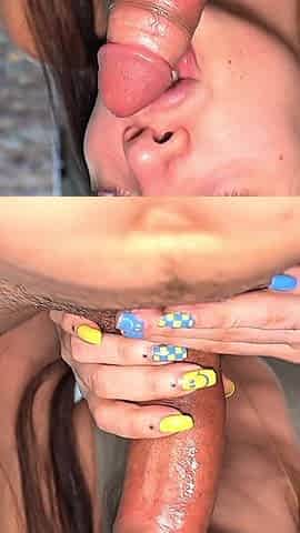Sexy Girl Deepthroating a Big Cock and Ending with Cum on Her Feet