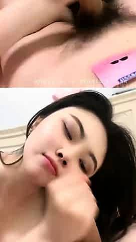 Asian taco teen finger massage herself