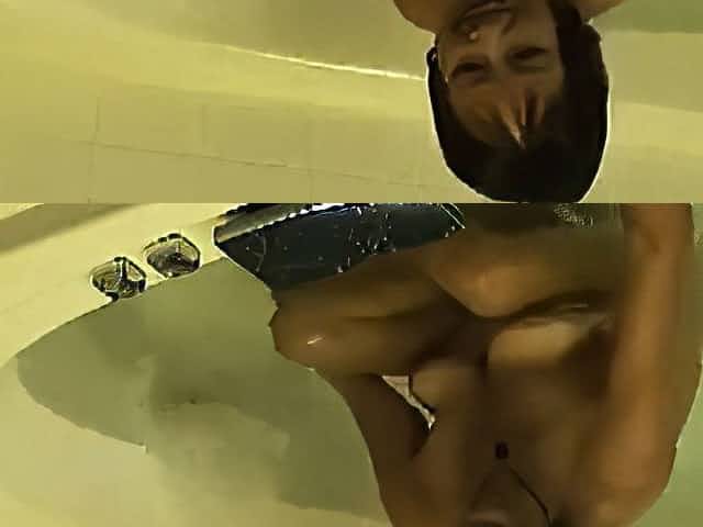 Asian granny takes a bath and is joined by a prick she suck